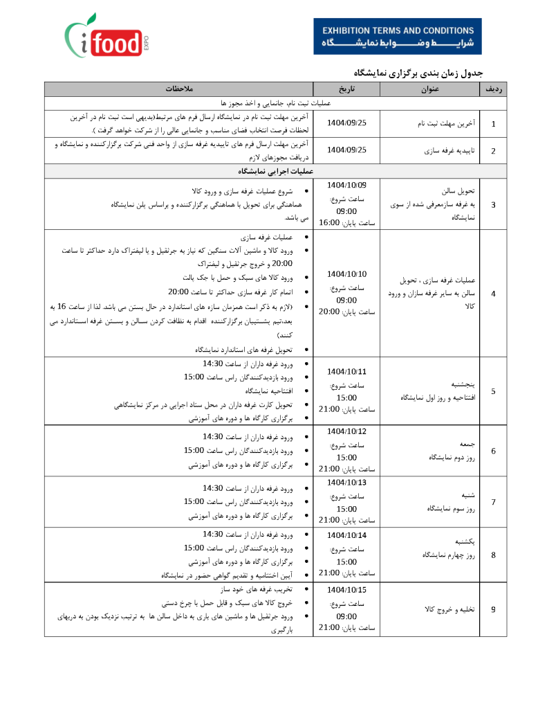 جدول زمانبندی نمایشگاه